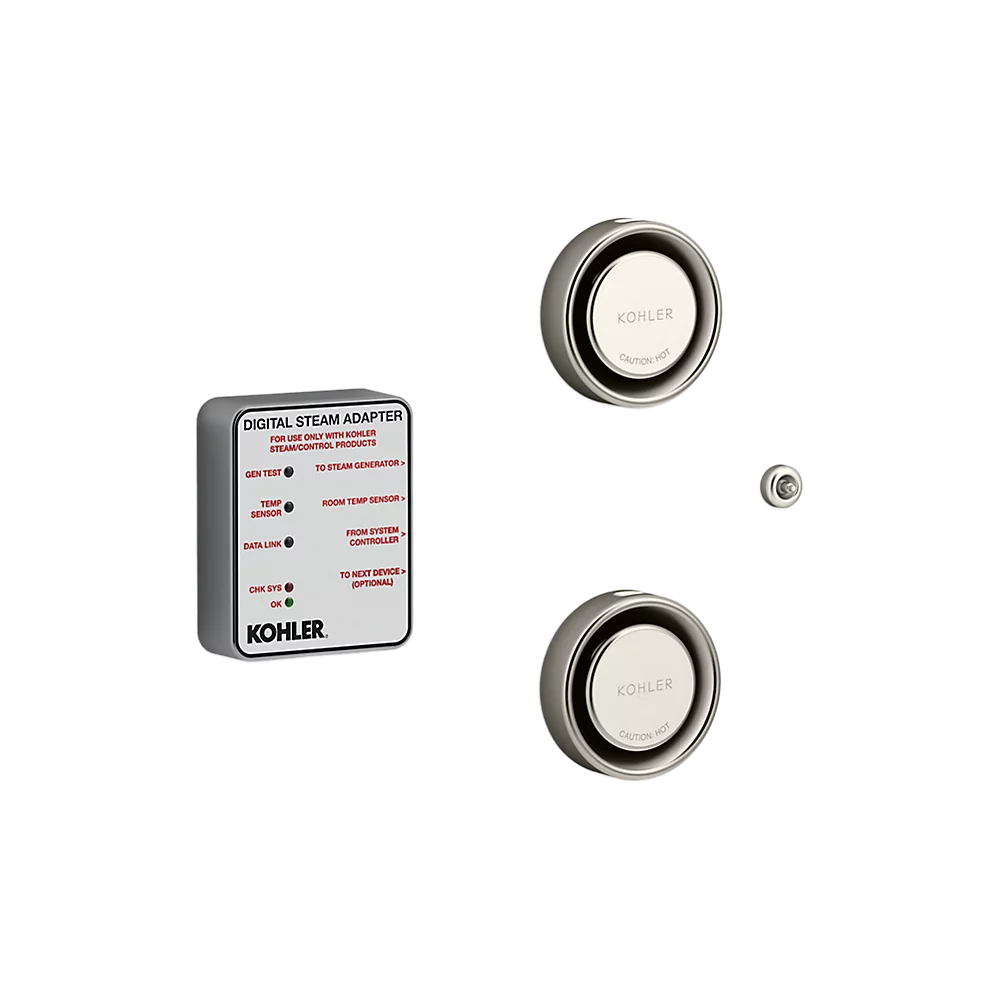 The Kohler K-5549-K1 DTV+ Steam Adapter kit enables the DTV+ system to control an Invigoration® Series steam generator, bringing steam to your steam shower space in just 60 seconds at the push of a button. The kit also includes a remote temperature sensor and a steam head with aromatherapy well, allowing you to add aromatic scents to enhance your steam experience. For use with Kohler Tandem units (19kw to 30kw)